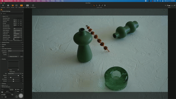 Overlays are transparent images that lay on top of your photo when using the “live view” feature in Capture One.